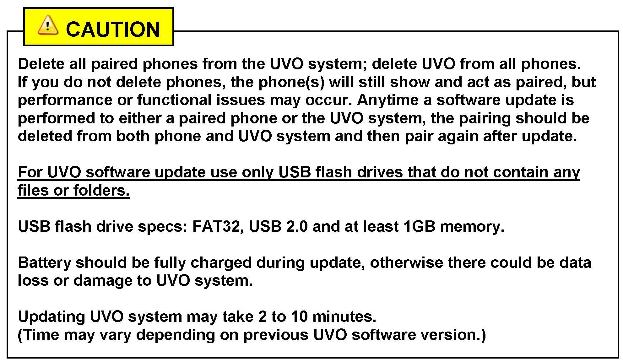 If you do not delete phones, the phone(s) will still show and act as paired, but there may be performance or functional issues. Anytime a software update is performed to either a paired phone or the UVO system, the pairing should be deleted from both phone and UVO system and then re-paired after update.*