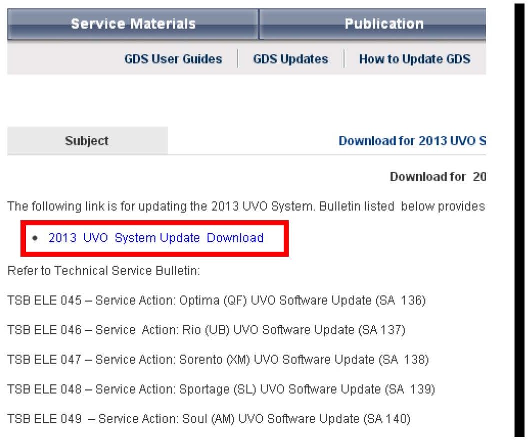 2. Click on "2013 UVO System Update Download" link.
