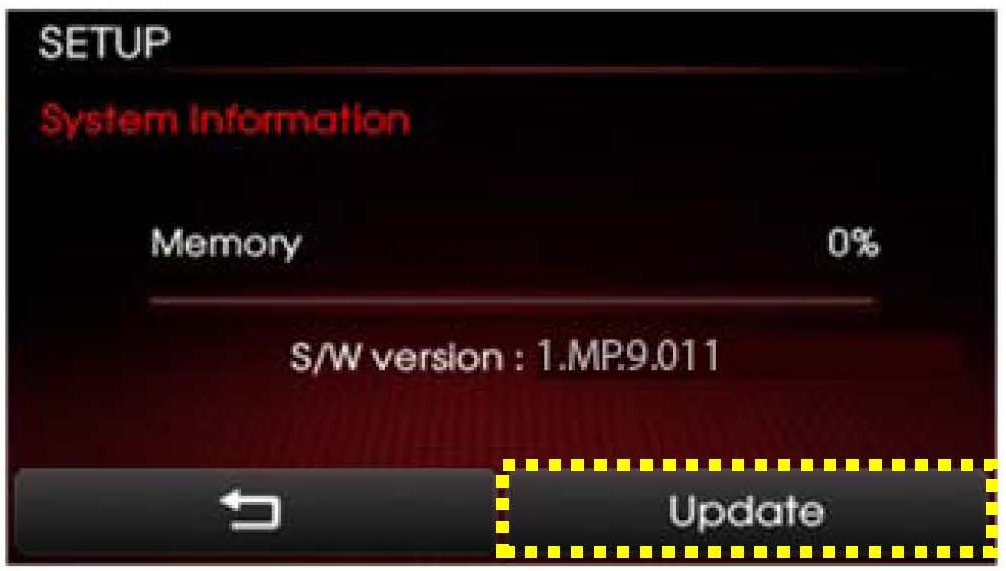 Repeat steps 2 ~ 4 and verify whether UVO system version has been updated to version 1.MP.9.013.