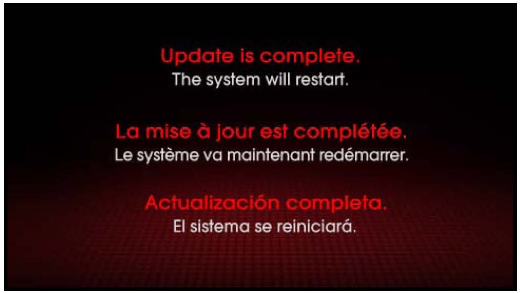 16. After the update is complete, the display shown on the right will appear for a few moments; then the UVO system will reboot again.