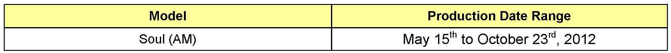 AFFECTED VEHICLE PRODUCTION RANGE: