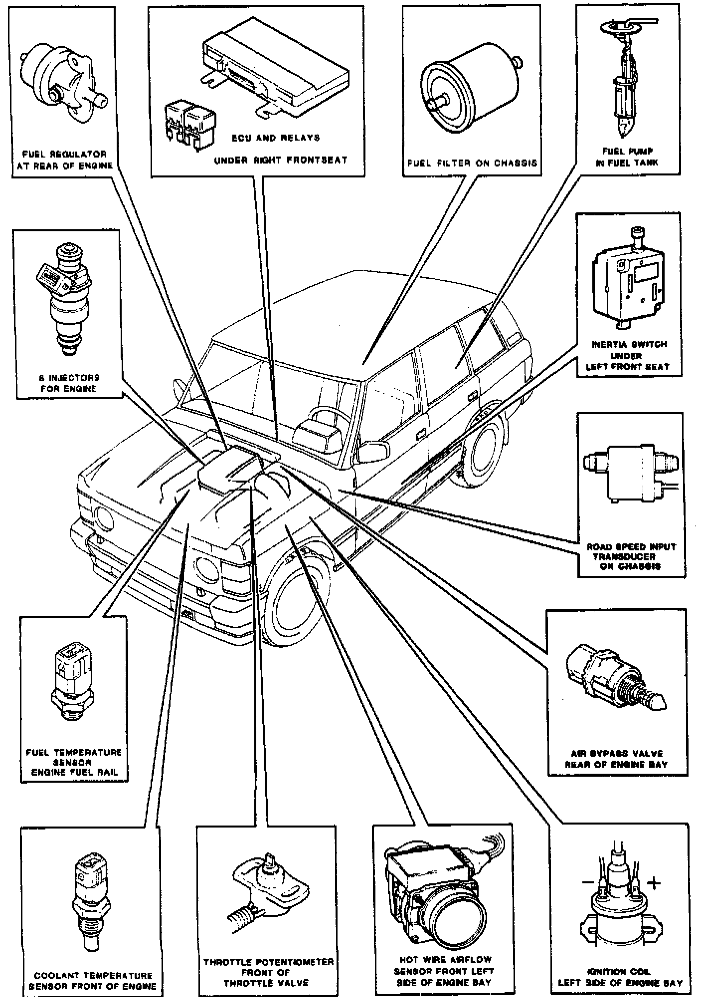 The inertia switch (see image below) is located under the left front seat attached to the inner face of the rear front seat base. Access to the switch is gained through the opening at the rear of the seat base.