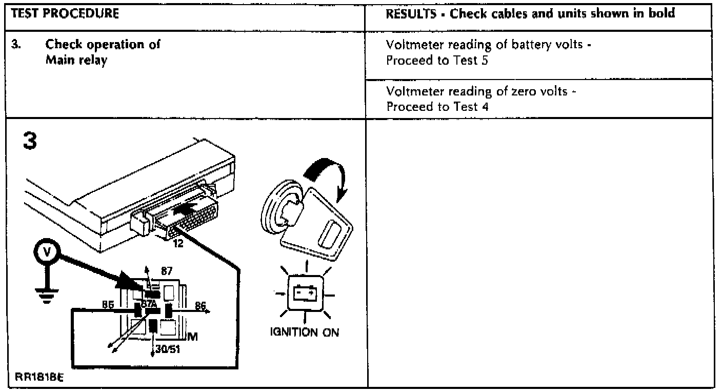 Main Relay (Computer/Fuel System): Testing and Inspection