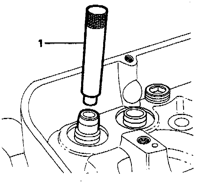 1. Using the valve guide remover R0274401, drive out the old guides from the valve spring seat face of the cylinder head.