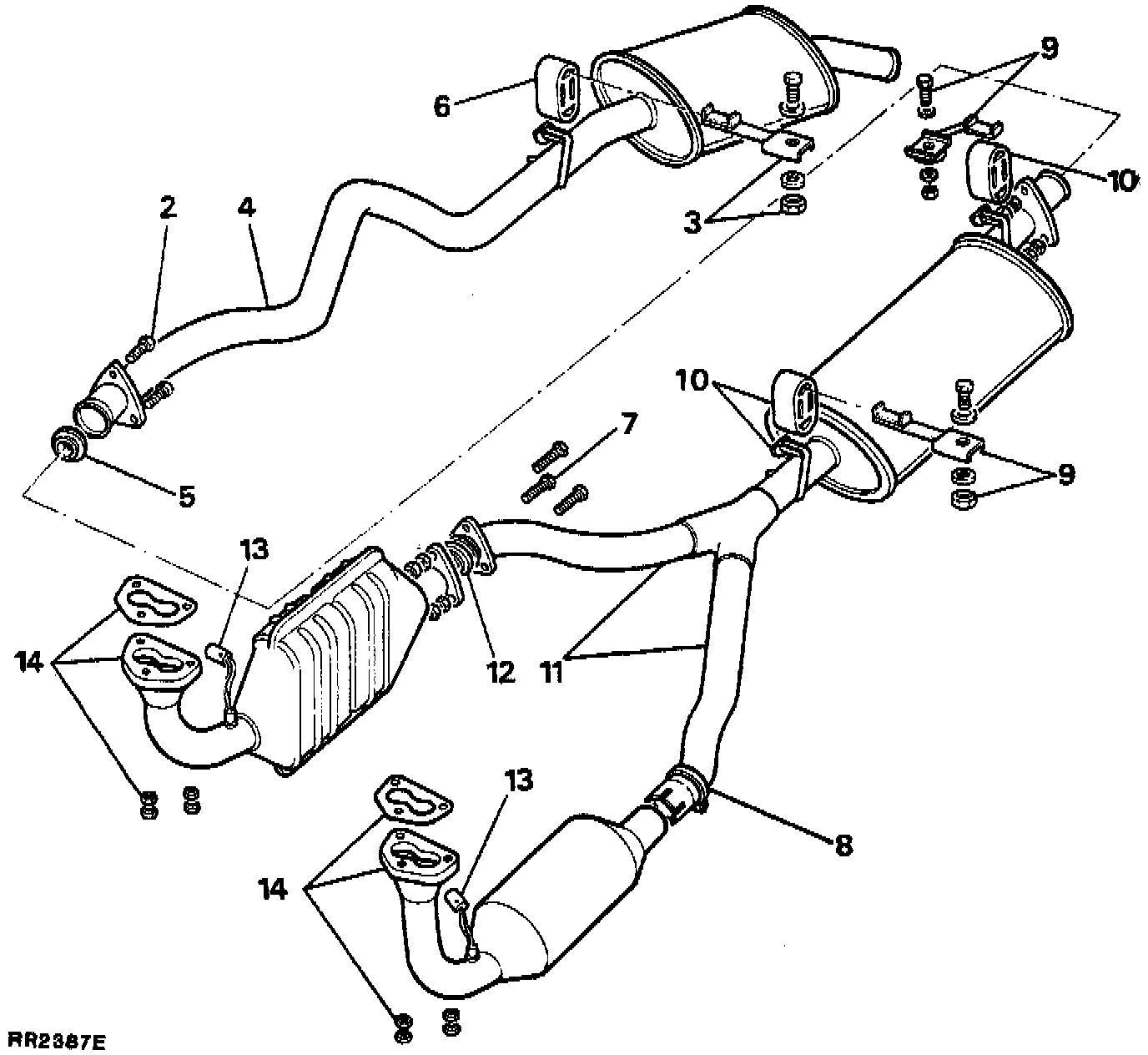 WARNING: To prevent personal injury occurring from a hot exhaust system, DO NOT attempt to disconnect any of the components until ample time has elapsed tu allow the exhaust system to cool.NOTE: Ensure that no exhaust leaks are evident in either a new or old exhaust system, as this will affect vehicle performance, and contravene Federal emission regulations.