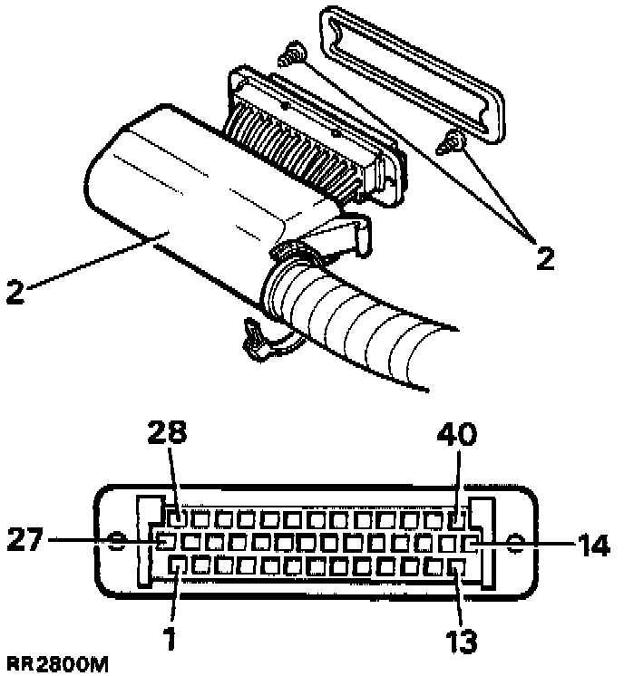NOTE: There are six pin numbers 1, 13, 14, 27, 28 and 40 moulded onto the rear of the plug as shown in the illustration below. For clarity the electrical leads have been omitted.ECU Connector Pin ID: