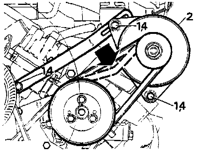 NOTE: Check adjustment after running engine at fast idle speed for 3-5 minutes if a new belt has been fitted.