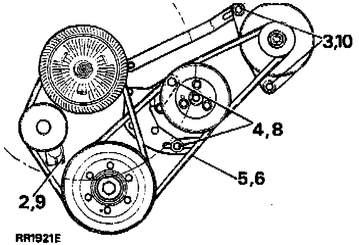 5. Refit the alternator drive belt and adjust to give 4-6mm (0.19-0.25 in) movement when checked midway between the power steering pump and alternator pulleys.