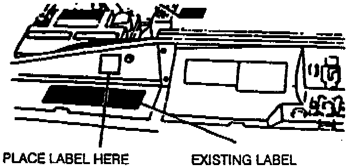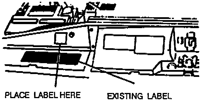 7. After cleaning the surface, complete and affix a Service Campaign label to the vertical surface of the radiator support panel next to the green Emissions Label. Spray the label with a dear acrylic coating (such as krylon 1301) for weather durability.