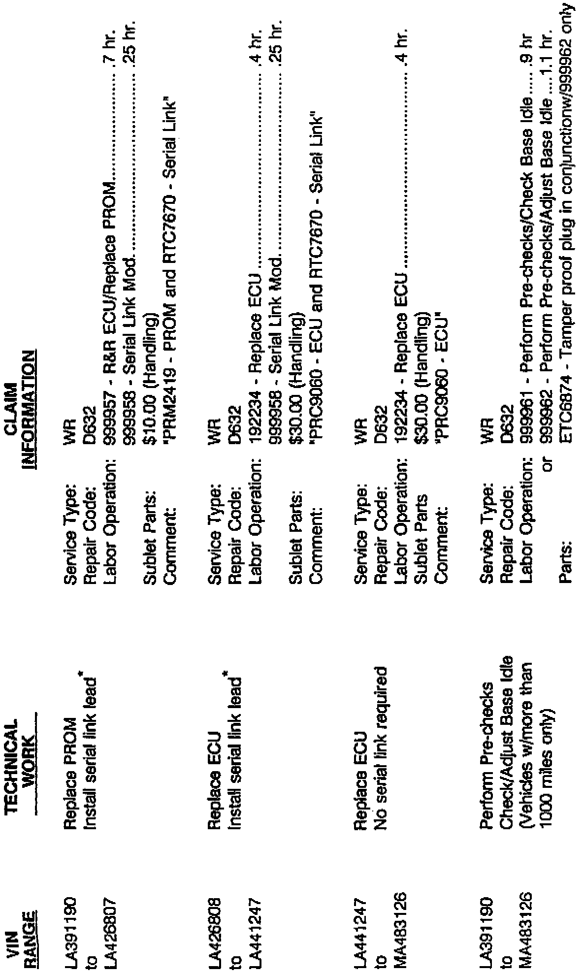 Owners of vehicles registered in California will be instructed by mail to make an appointment to have their vehicle modified. Arrangements to correct these vehicles should be given high priority at your dealership. A copy of the customer letter and a listing of all customers receiving the mailing is included with this bulletin. Customer letters will be mailed in early March, 1991.