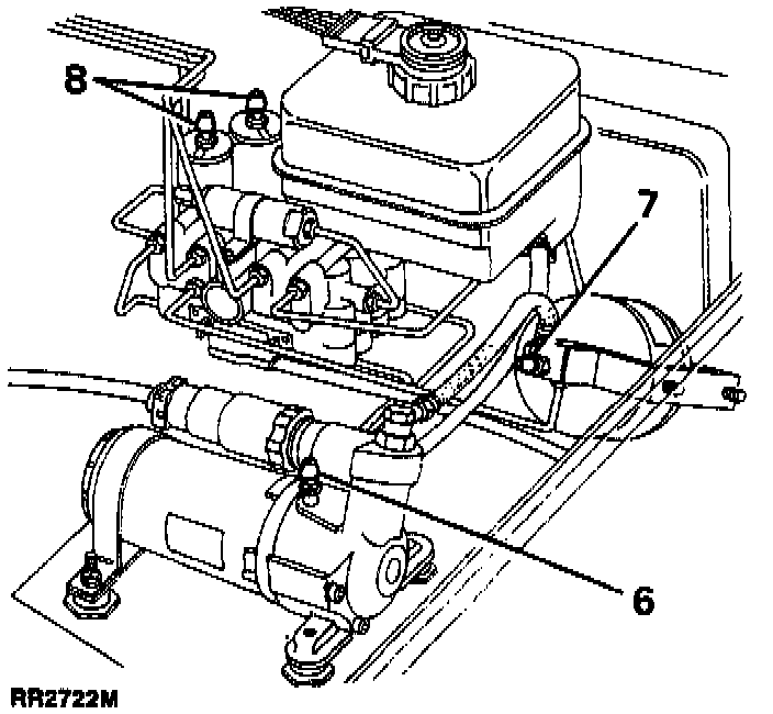 10. Bleed master cylinder - switch ignition on. System pressure will increase until pump cuts out. If pump does not cut out after running for 45 secs, check system for leaks.