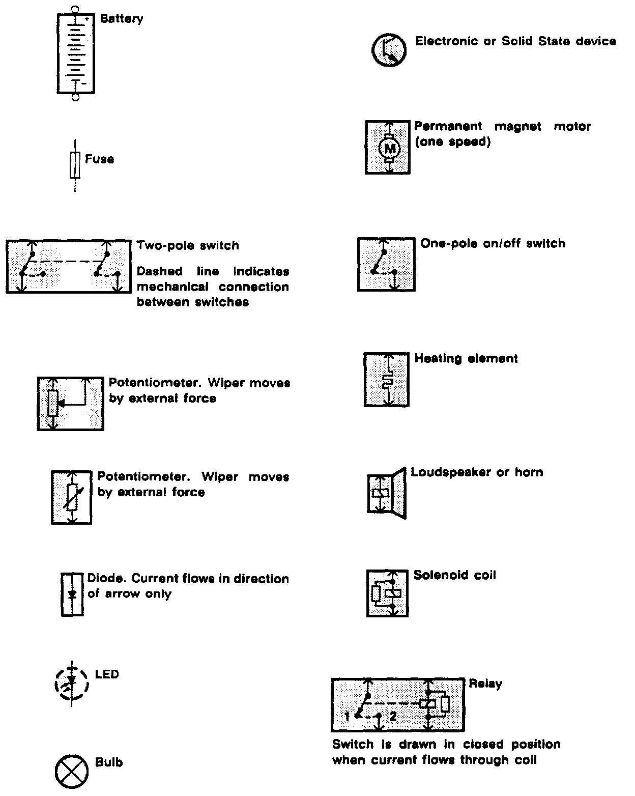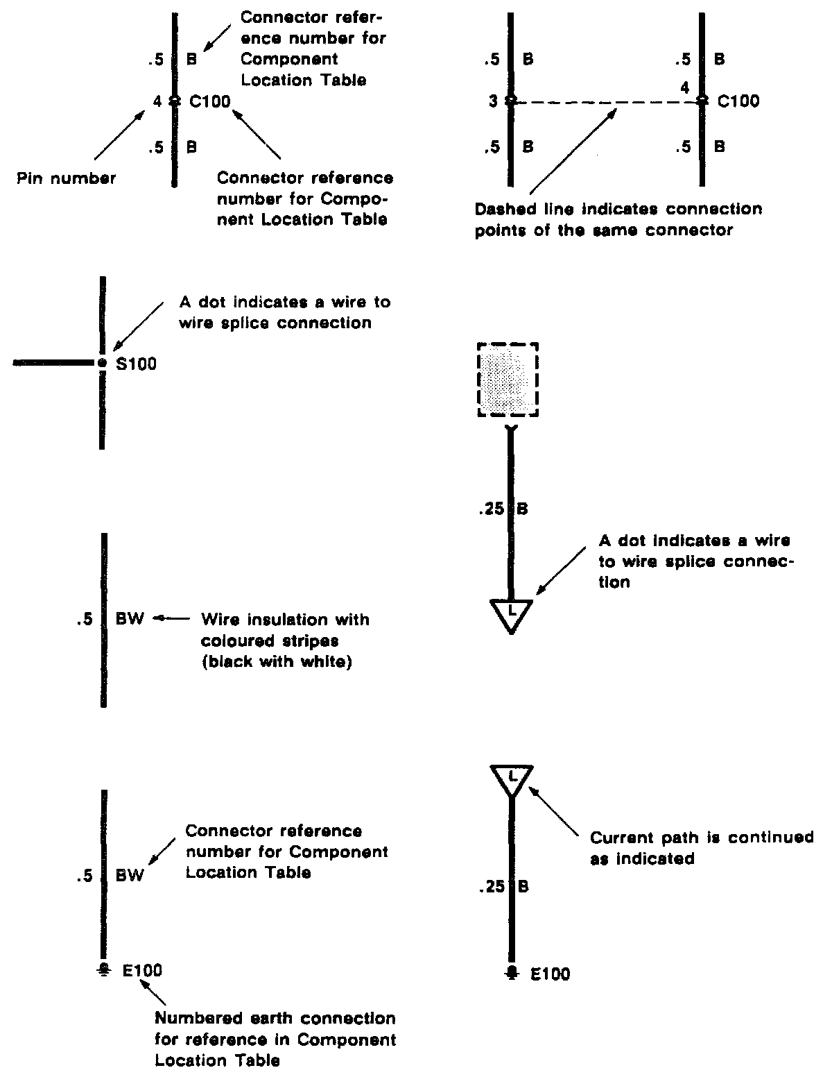 The abbreviations and symbols explained here are used throughout the manual; it is necessary to know what they mean in order to use the diagrams effectively.