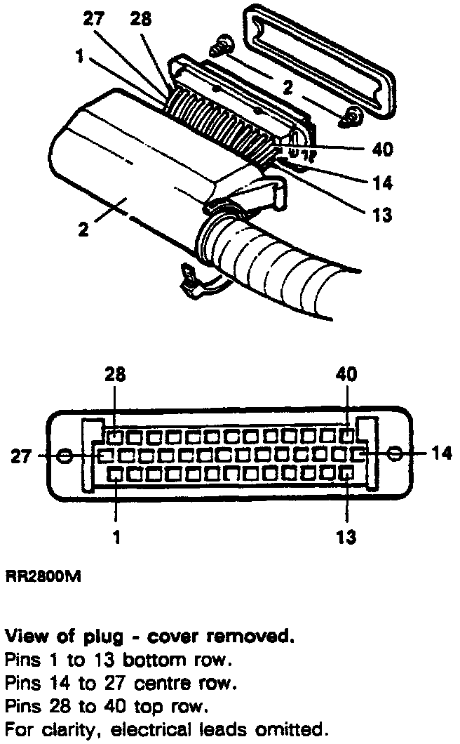 3. Only pin numbers 1, 13, 14, 27, 28 and 40 are moulded onto rear of plug.