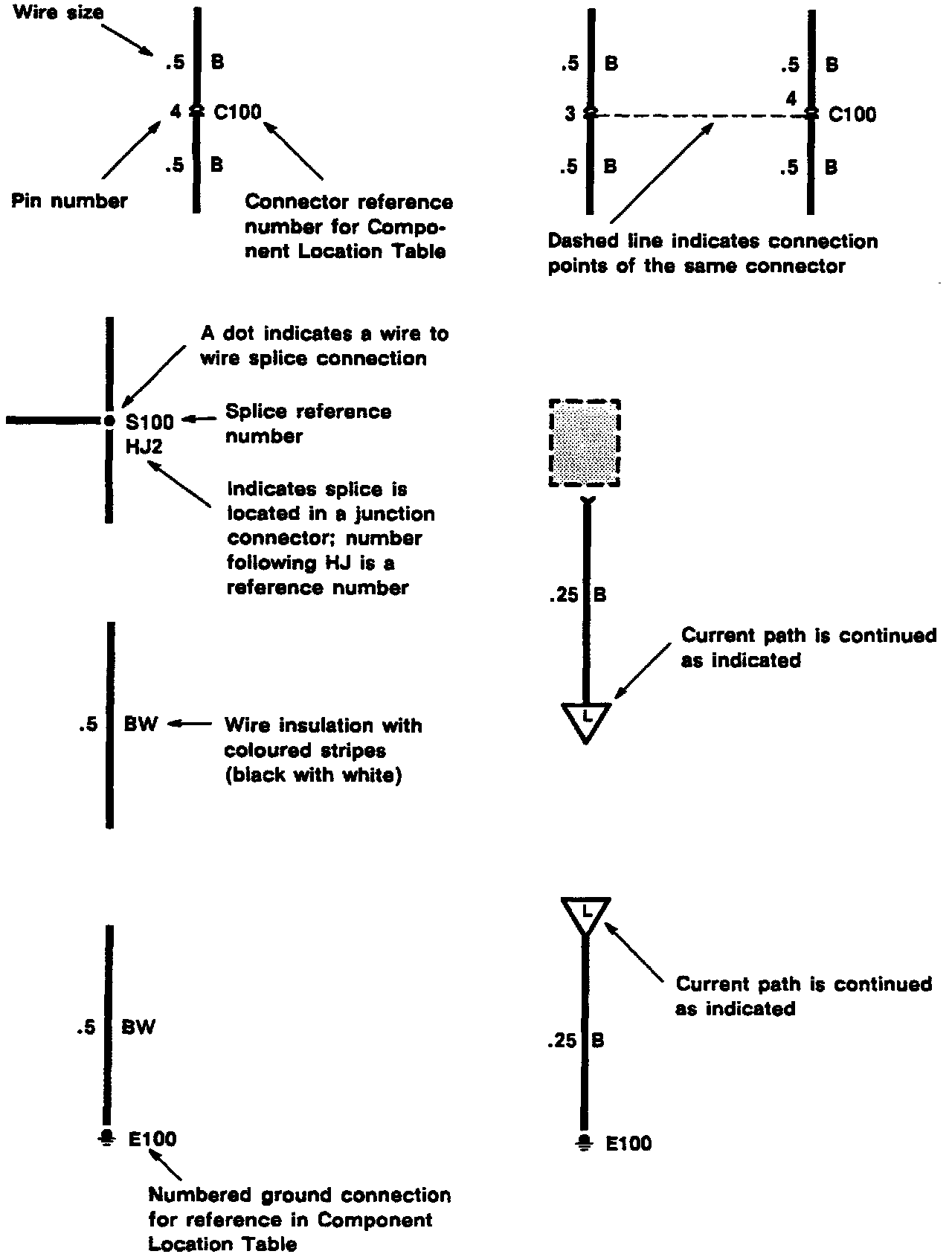 The symbols explained here are used throughout; it is necessary to know what they mean in order to use the diagrams effectively.