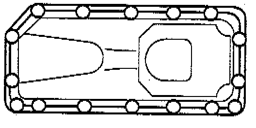 2. Clean mating faces with suitable solvent and apply a 2 mm bead of Hylosil RTV 102, or equivalent, to oil pan joint face as shown.