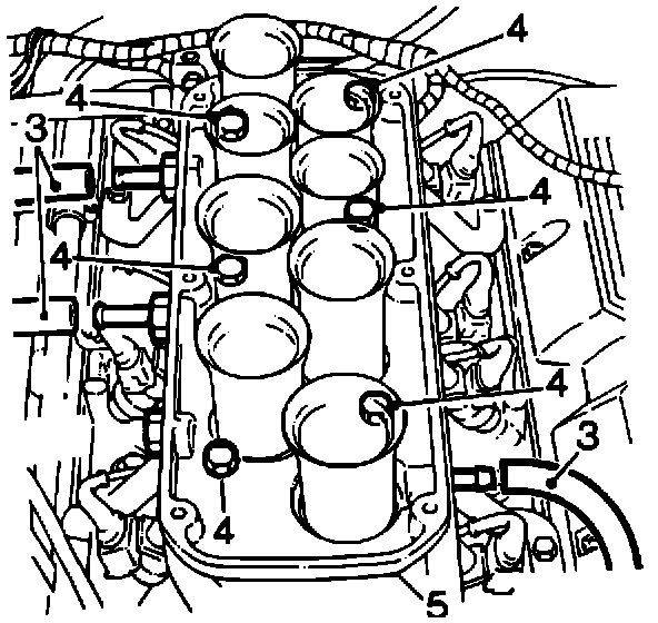 4. Remove six through bolts (with plain washers) securing ram housing to intake manifold.