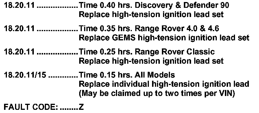 12. If a misfire is evident and no high-tension lead fault is found, investigate the following causes: