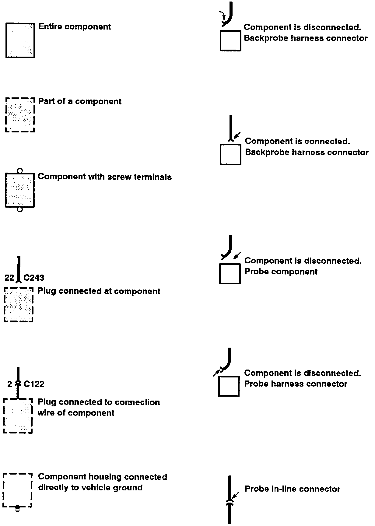 The symbols explained here are used throughout; it is necessary to know what they mean in order to use the diagrams effectively.