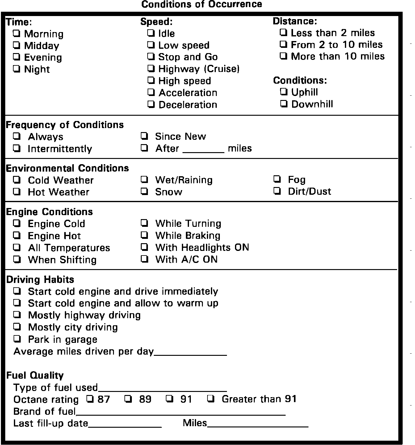 Driveability Worksheet