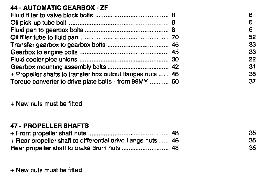 ZF 4HP22 4-spd A/T Tightening Torque: