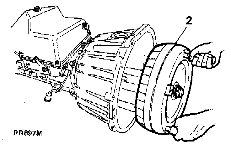 - Remove torque converter using torque converter handles 1 8G1501, taking care not to damage torque converter/oil pump housing oil seal.