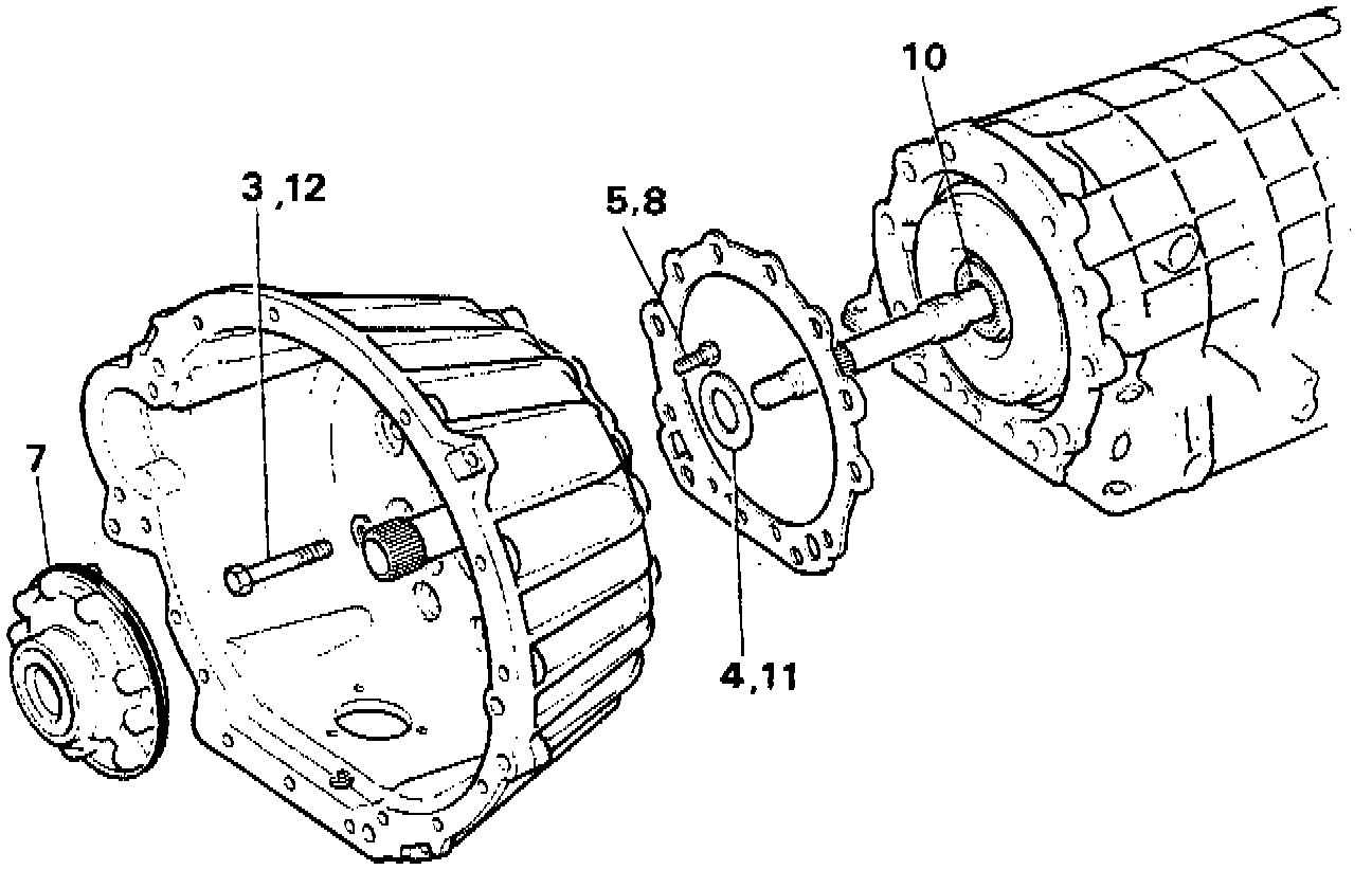 12. Install bell housing and intermediate plate assembly, tighten twelve bolts to 46 Nm.
