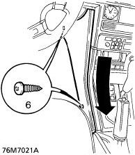 6. Remove 2 screws securing each side panel to centre console. Release sprag clips from fascia switch pack by firmly pulling rearwards. Remove side panels.