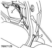 2. Disconnect tailgate harness multiplug from body harness. Release grommet from lower of 'E' post. Pull harness from body.