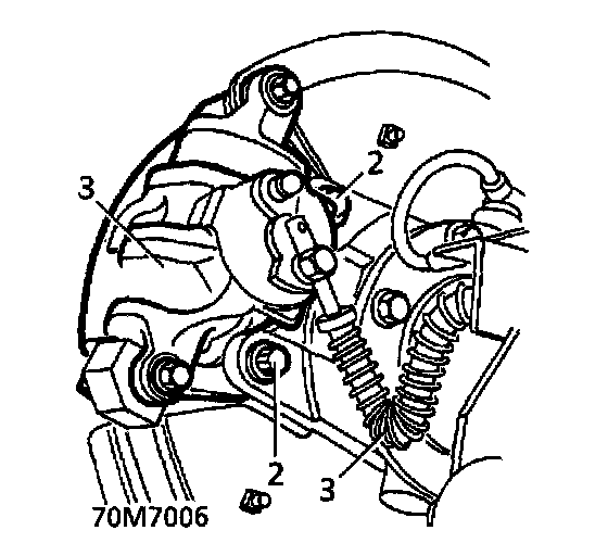2. Remove 2 bolts securing caliper.
