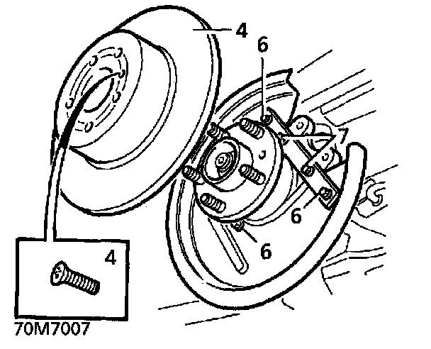 9. Fit disc shield, fit securing bolts. Tighten to 8 Nm. (6 ft lbs)