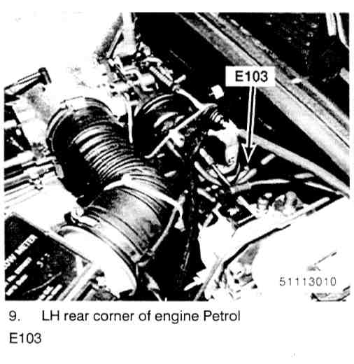LH rear corner of engine below valve cover