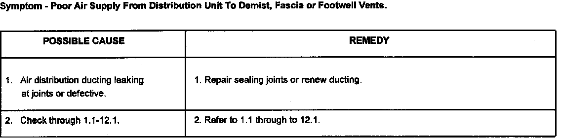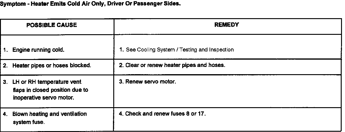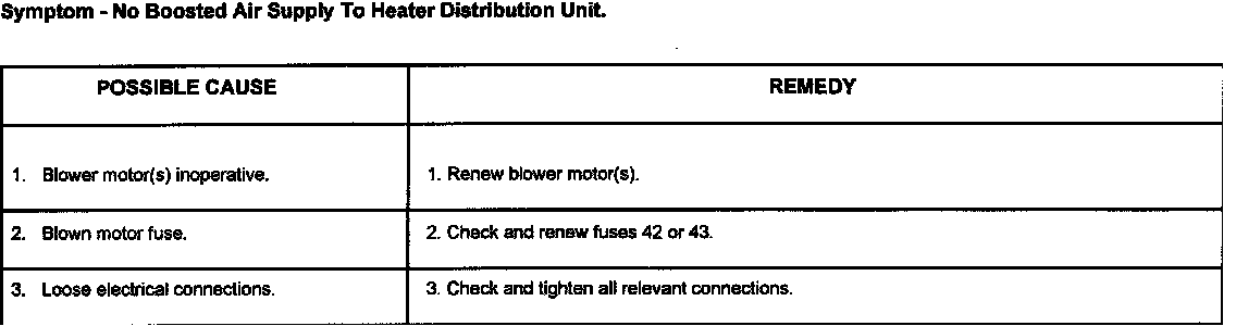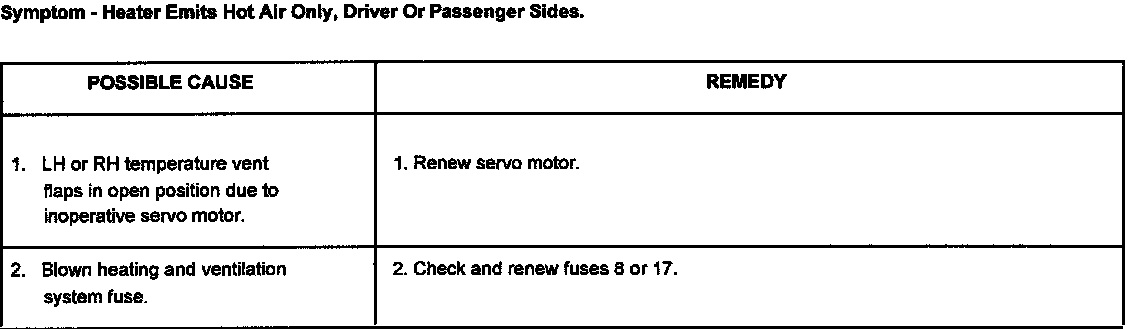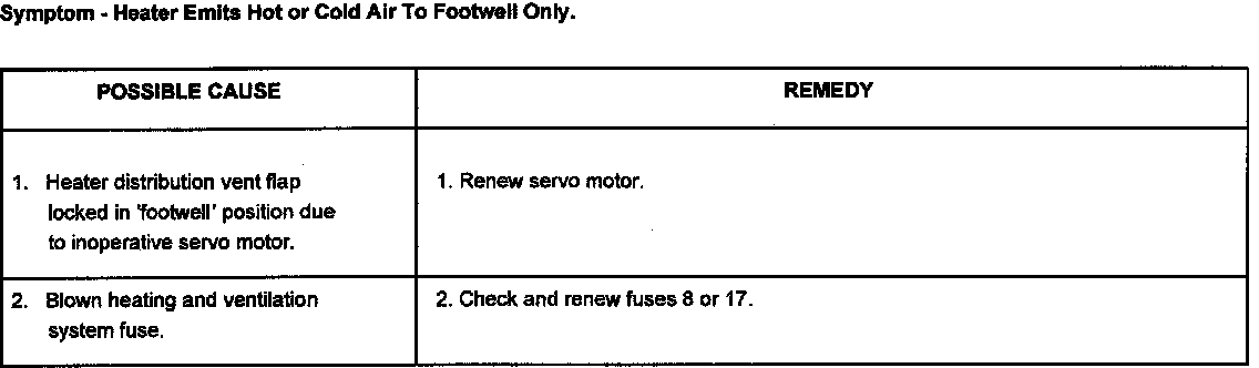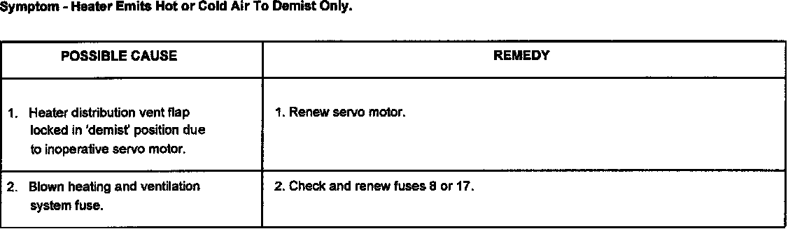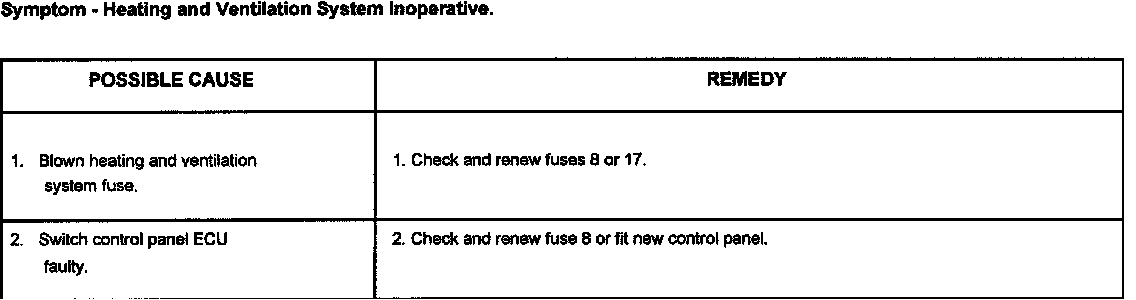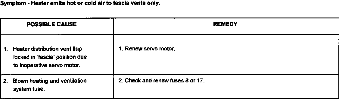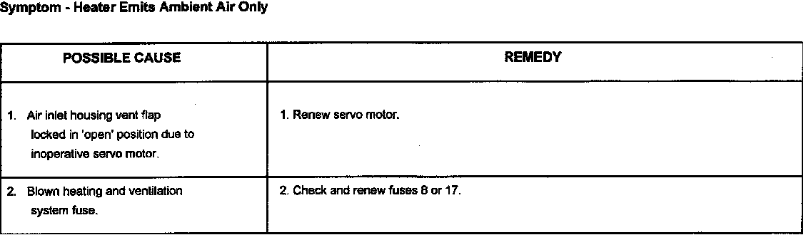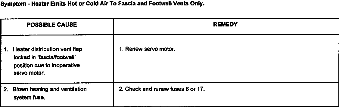 This section covers mechanical, fuse and possible flap servo motor faults that could occur in the heating and ventilation system.