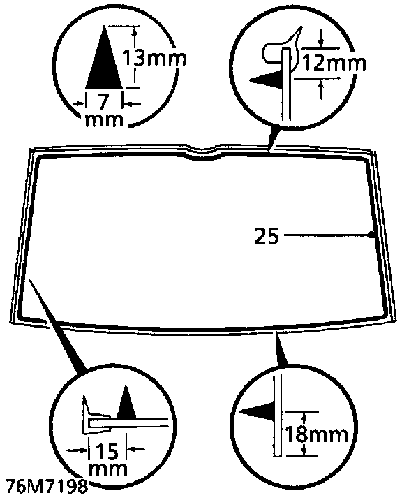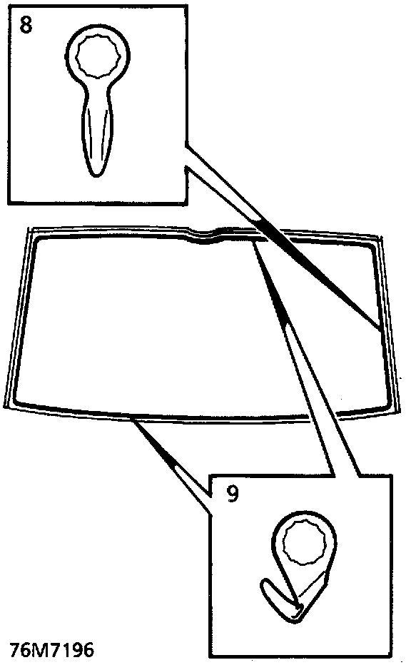 NOTE: Side finishers are secured to backlight with P.U. sealer. New backlight glasses are supplied with side finishers fitted. Side finishers are available separatley if original glass is to be refitted.