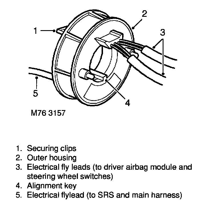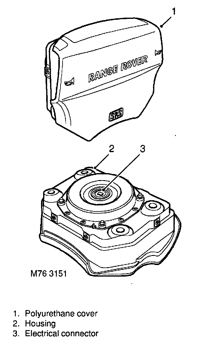 The driver's airbag module is attached to the steering wheel by four captive bolts. Electrical connection to the SRS DCU is provided via the rotary coupler.