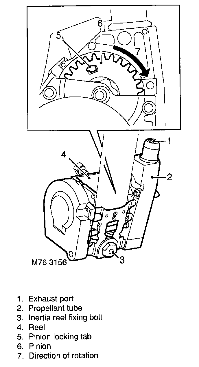 WARNING: Once the pre-tensioner has been operated, it cannot be reset. The pinion locking pin will have been broken and the gas generant will be exhausted. The unit must be replaced.