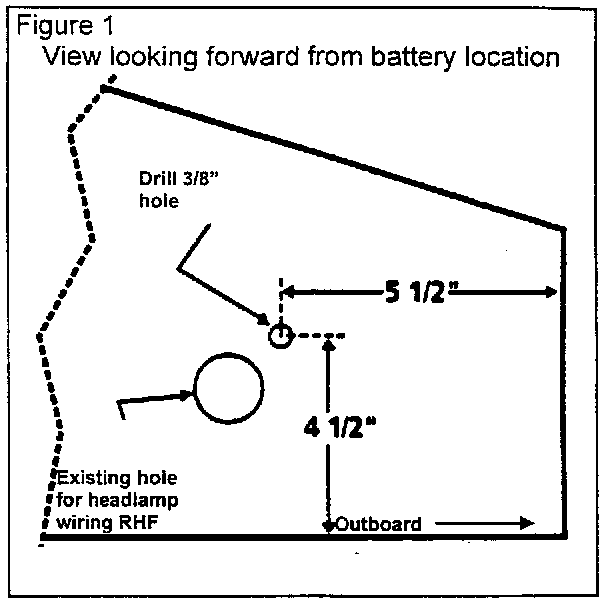 3. Drill a 3/8-inch hole in the radiator support as shown in Figure 1.