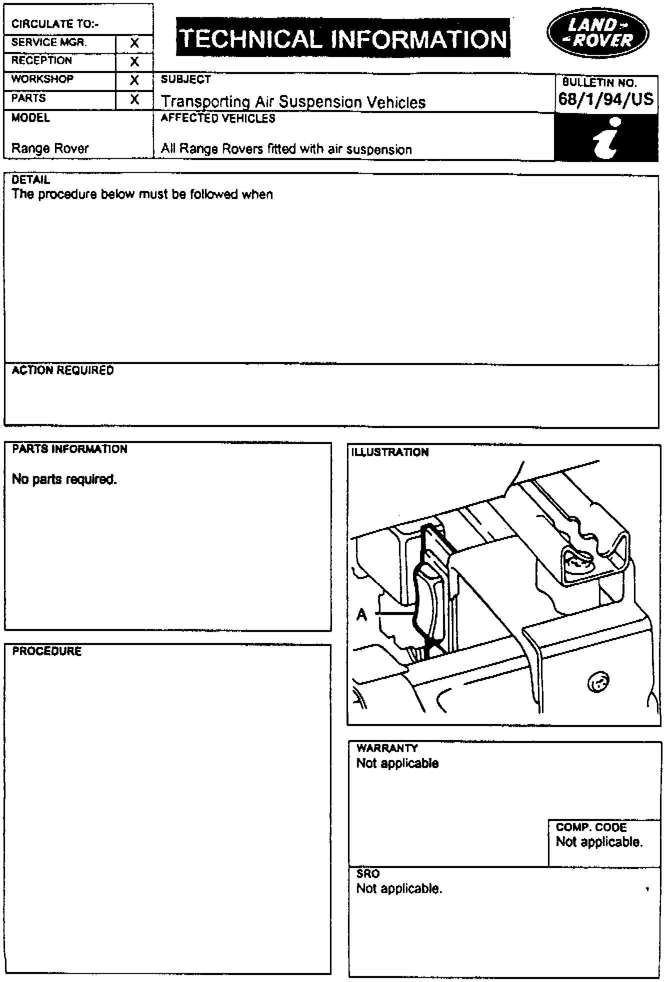 Beginning in 1994, Land Rover North America, Inc. will issue product-related service information in the format used worldwide by Land Rover. Technical and service information of a product nature will be issued on Technical Information Bulletins (TIBs) on white paper.