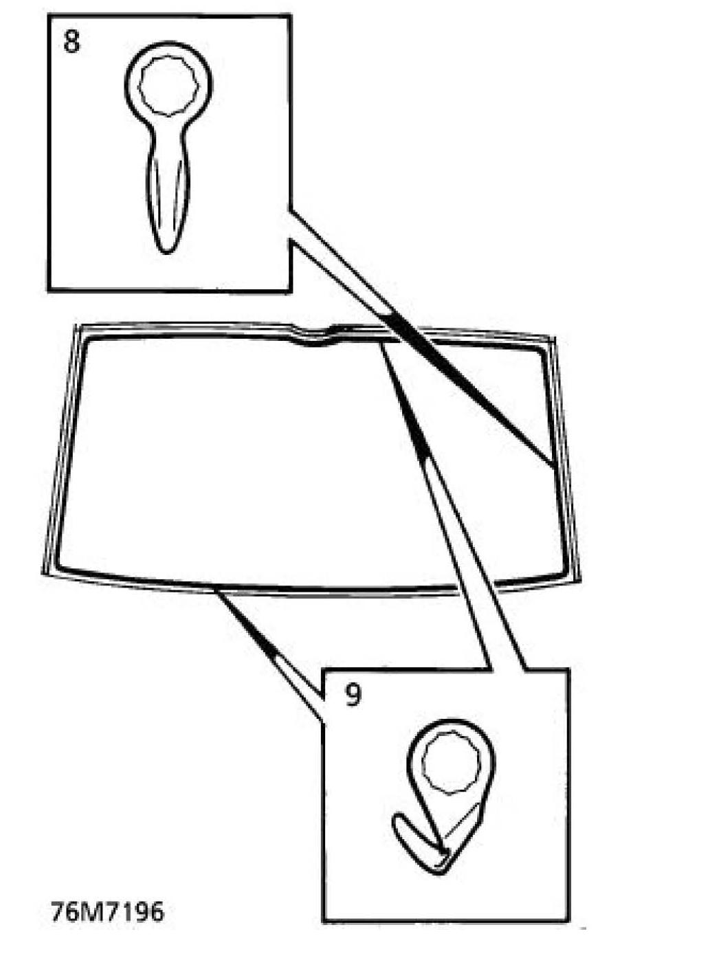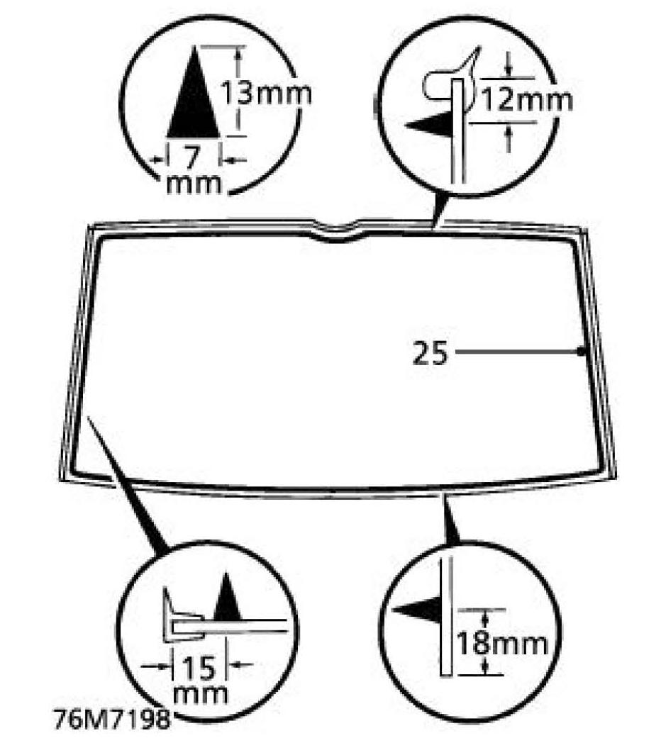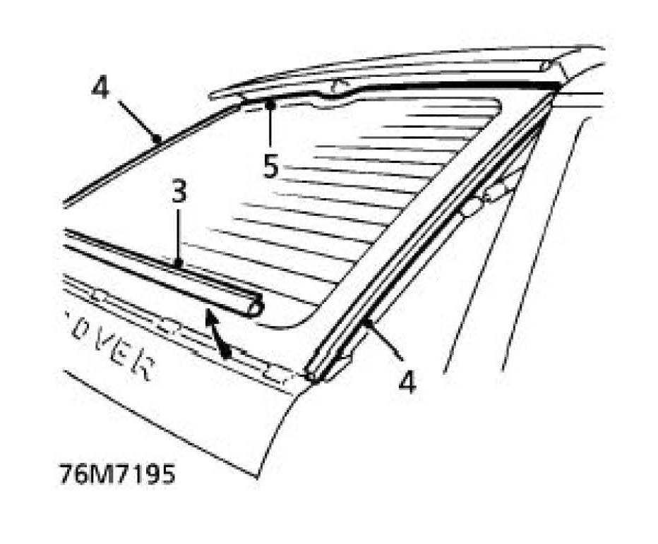 NOTE: Side finishers are secured to backlight with P.U. sealer. New backlight glasses are supplied with side finishers fitted. Side finishers are available separately if original glass is to be refitted.
