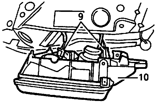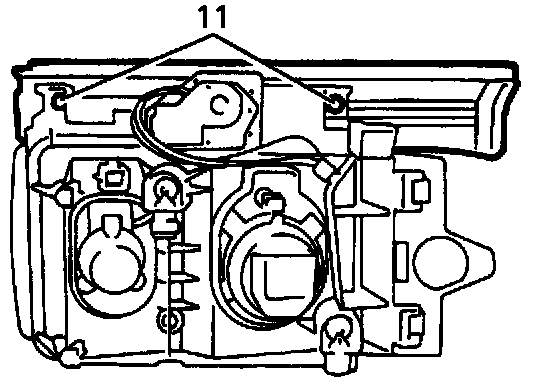 11. Remove 2 screws securing trim moulding to headlamp housing. Remove trim.