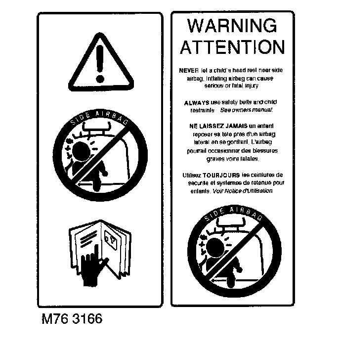 WARNING: Never let a child's head rest near side airbag. Inflating airbag can cause serious or fatal injury.