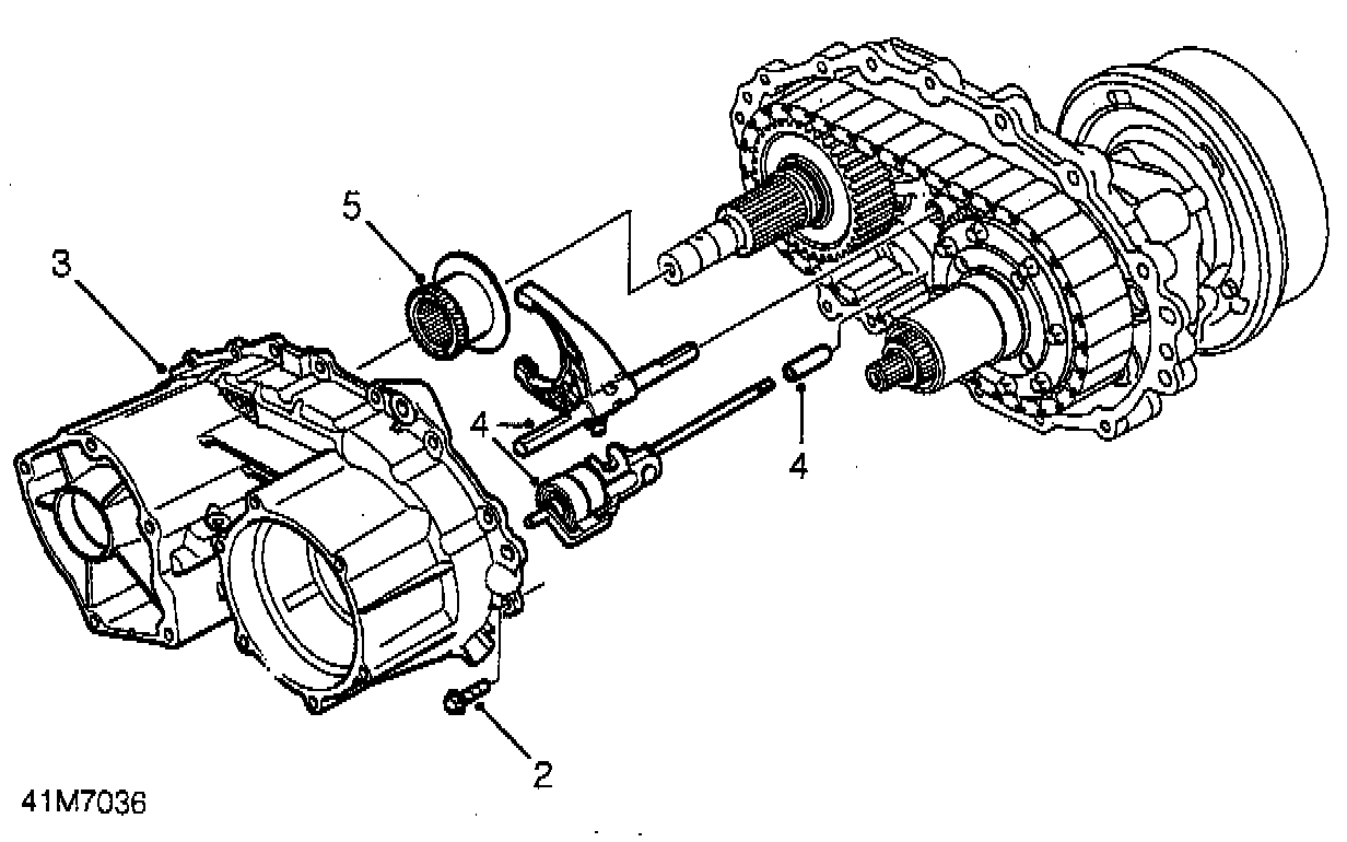4. Remove selector fork assembly, interlock spool shaft and reduction hub from rear casing. Collect tube spacer.
