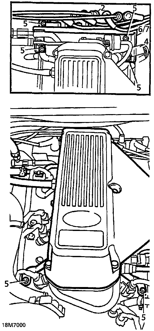 6. Lift fuel rail slightly for access. Release ignition coil bracket from inlet manifold studs.