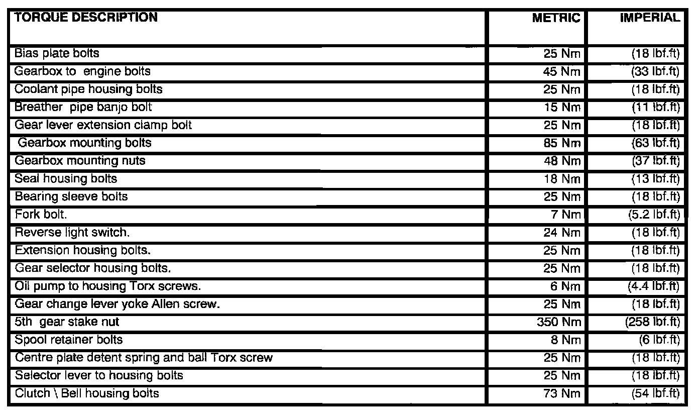 R380 5-spd M/T As Of 1999-0n, Tightening Torque:
