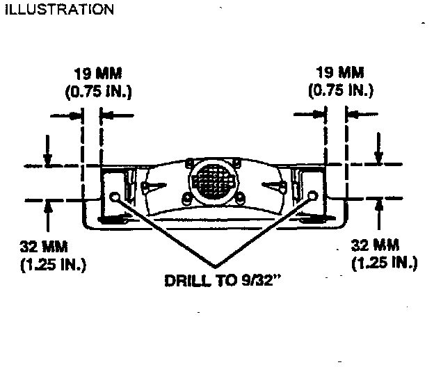 1. Using a (7 mm.) 9/32 in. drill bit, enlarge the mounting holes as shown in illustration.