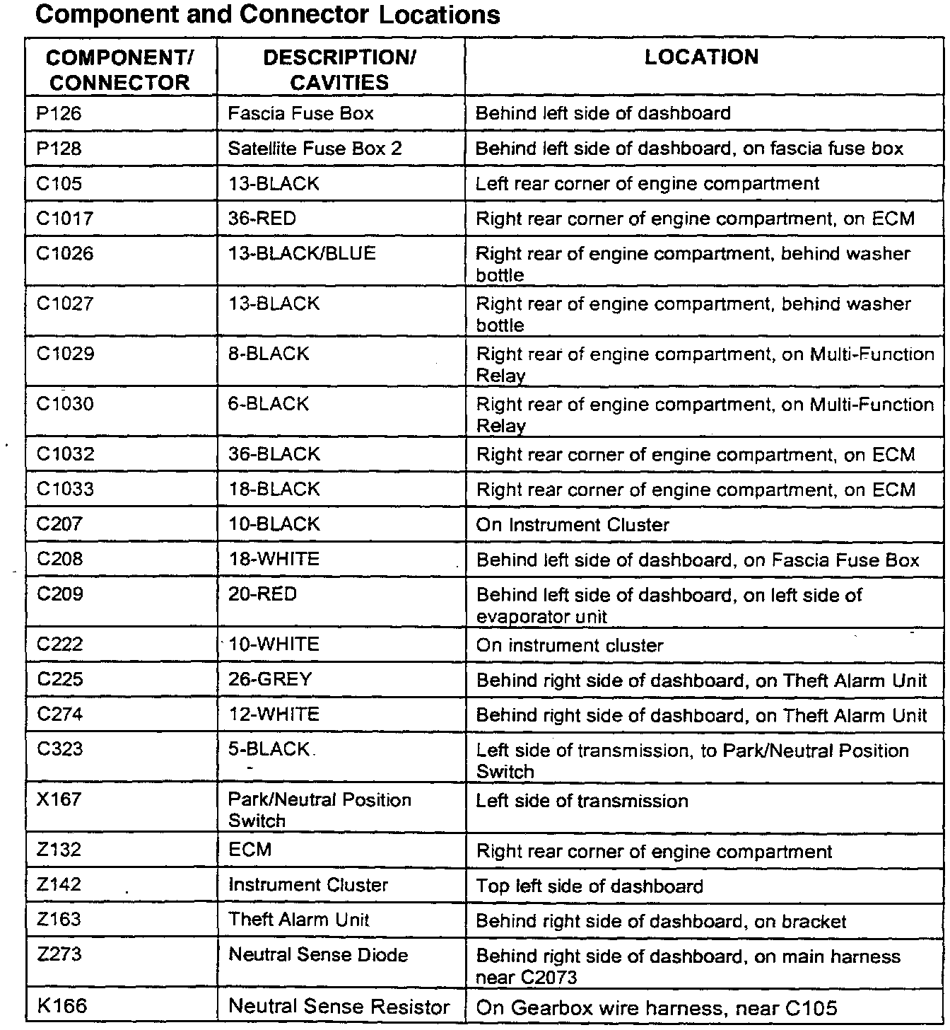Perform the diagnostic procedures and repairs outlined in the following pages for the repair of non-start conditions related to security system connectors.