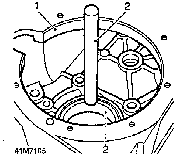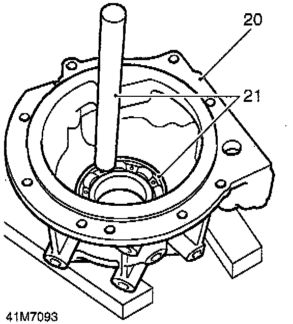 21. Using a soft metal drift, drive output shaft bearing out of housing; discard bearing.