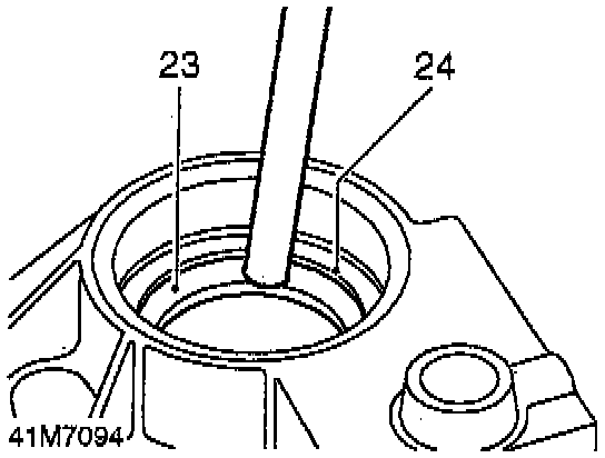 23. Using a soft metal drift, drive differential bearing race out of housing, discard bearing race.