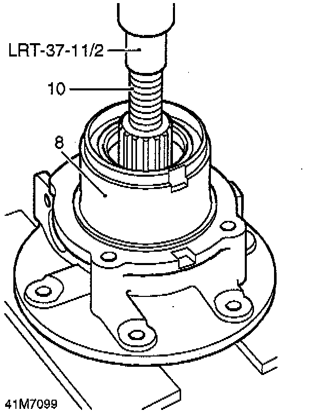 6. Position differential in hand press with thrust button, part of tool LRT-41-001 between press mandrel and differential shaft.