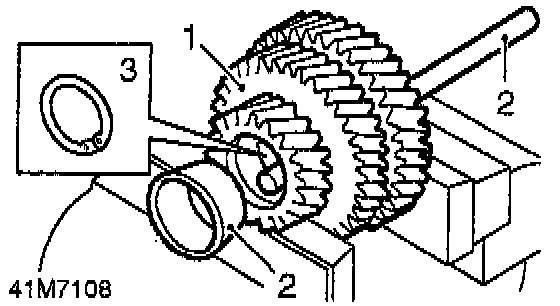 2. Using a soft metal drift, drive intermediate shaft bearing race out of gears; discard bearing race.