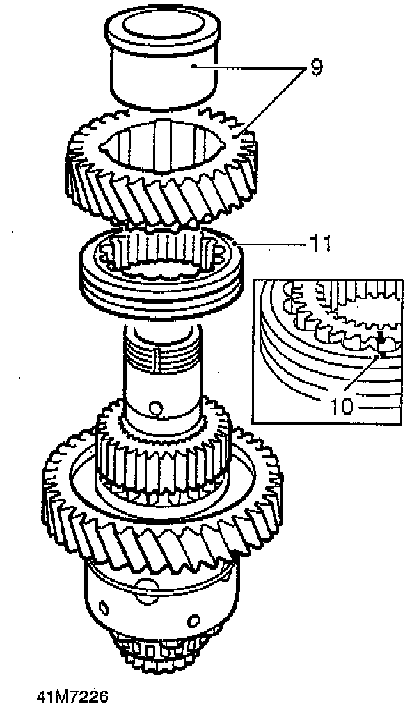 9. Remove high range gear and bush taking care not to disturb high/low selector sleeve.